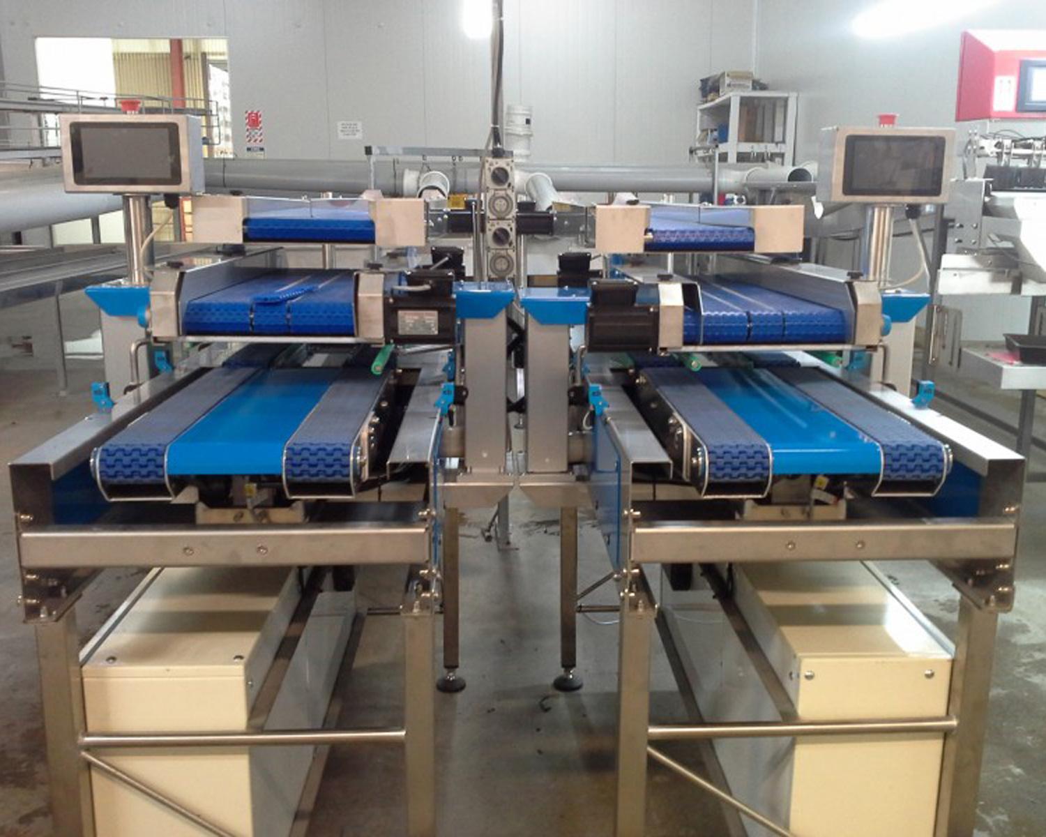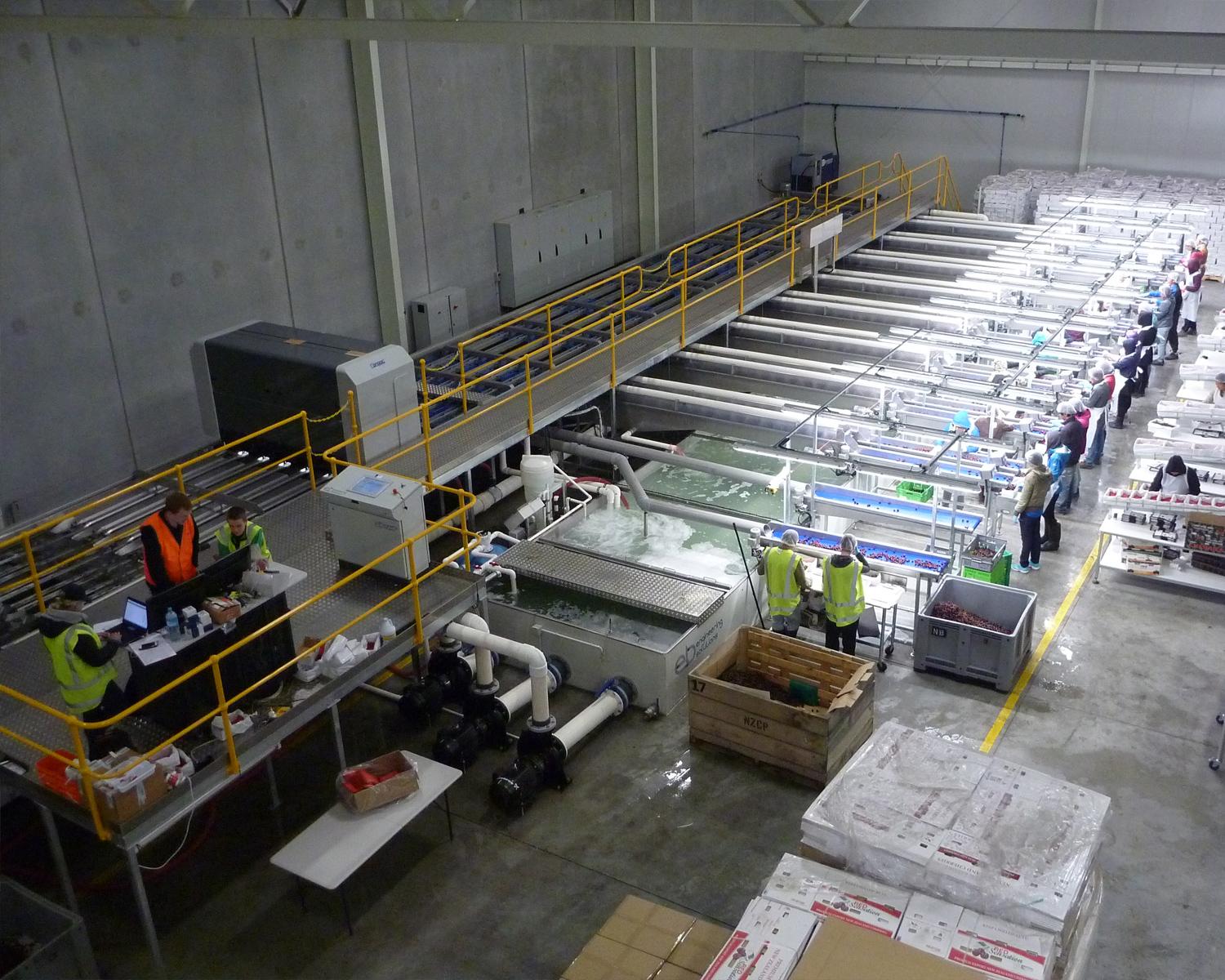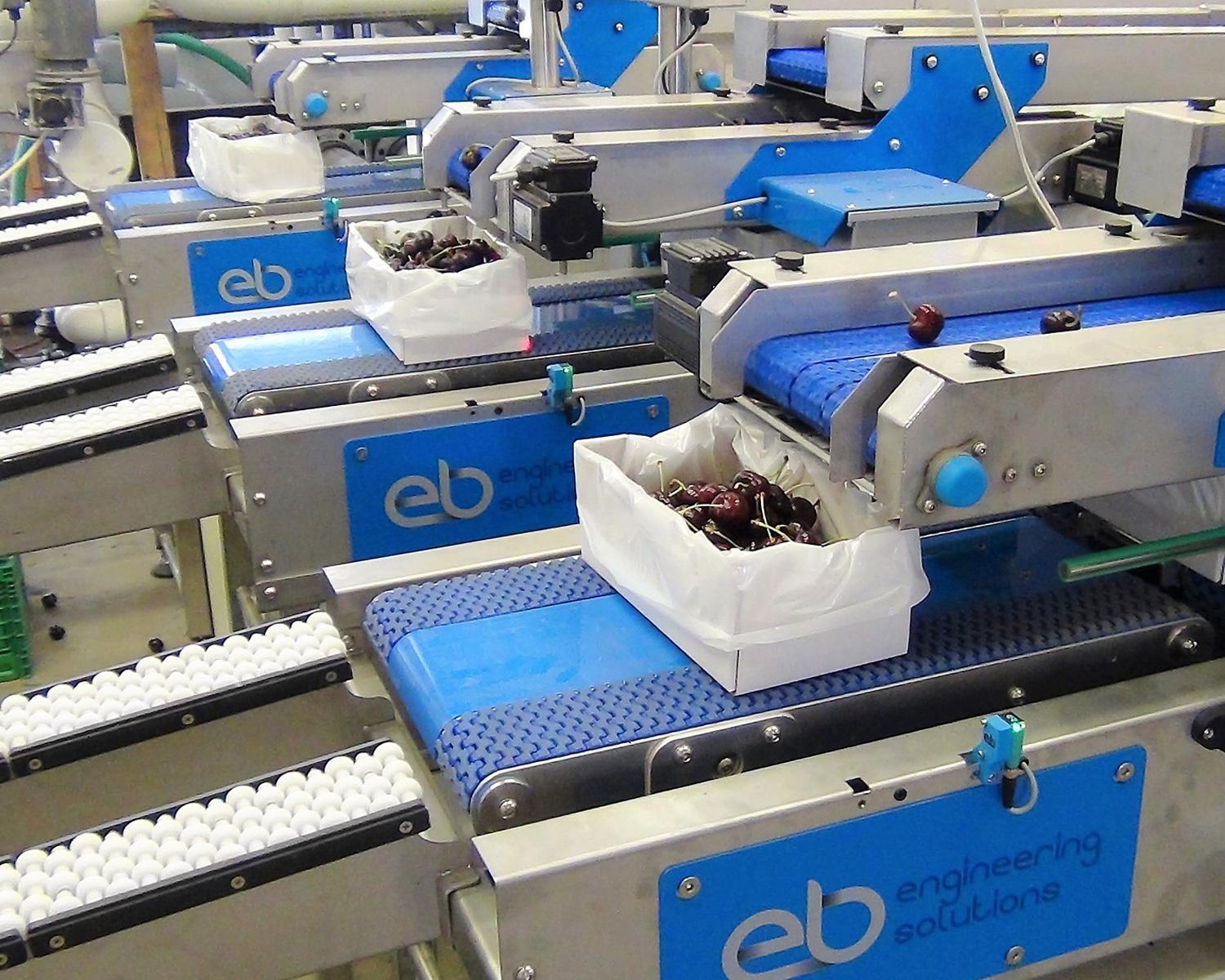 Designed for swift and careful product handling, accurate weighing, and high volume, with customisable options to suit various operations. Features include: stainless steel construction with plastic modular belts for easy cleaning and maintenance, electrically adjustable box height clearance to minimise fruit damage, long infeed dewatering belt for up to three graders to inspect fruit before boxing, and a ten box storage capacity on the box infeed conveyor.
